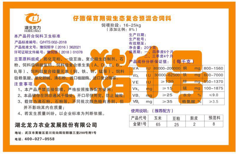 湖北龍力農(nóng)業(yè)發(fā)展股份有限公司坐落于武漢市黃陂區(qū)前川街向陽街群順三里298號附1號。公司成立于2014年6月,公司自成立以來把“創(chuàng)全球最大養(yǎng)豬綜合服務(wù)”為企業(yè)愿景。致力于打造教保料品牌”作為公司發(fā)展的明確目標(biāo)。公司一直致力于豬營養(yǎng)的研究和開發(fā),積極與國內(nèi)外高校和科研機構(gòu)合作,推廣養(yǎng)豬技術(shù)、動物營養(yǎng)新概念,向世界農(nóng)牧企業(yè)學(xué)習(xí)與合作。公司采用國內(nèi)先進的生產(chǎn)工藝,選擇高精度電子配料秤,高均勻度、無殘留混合機等先進設(shè)備....